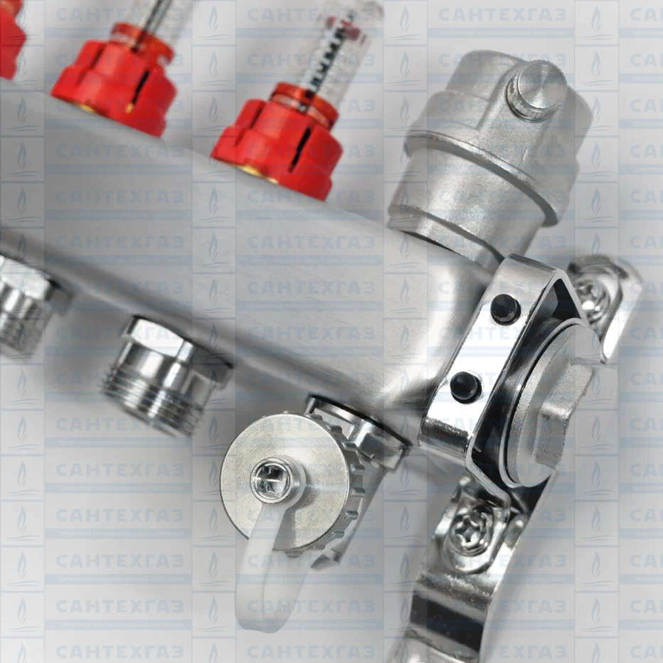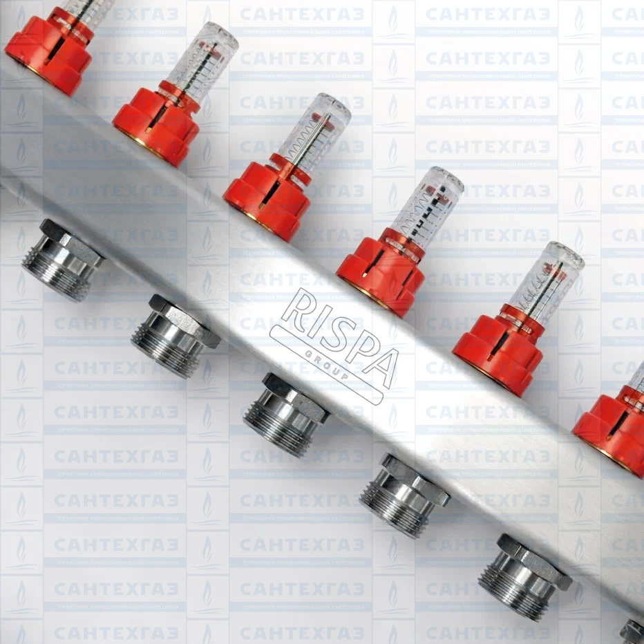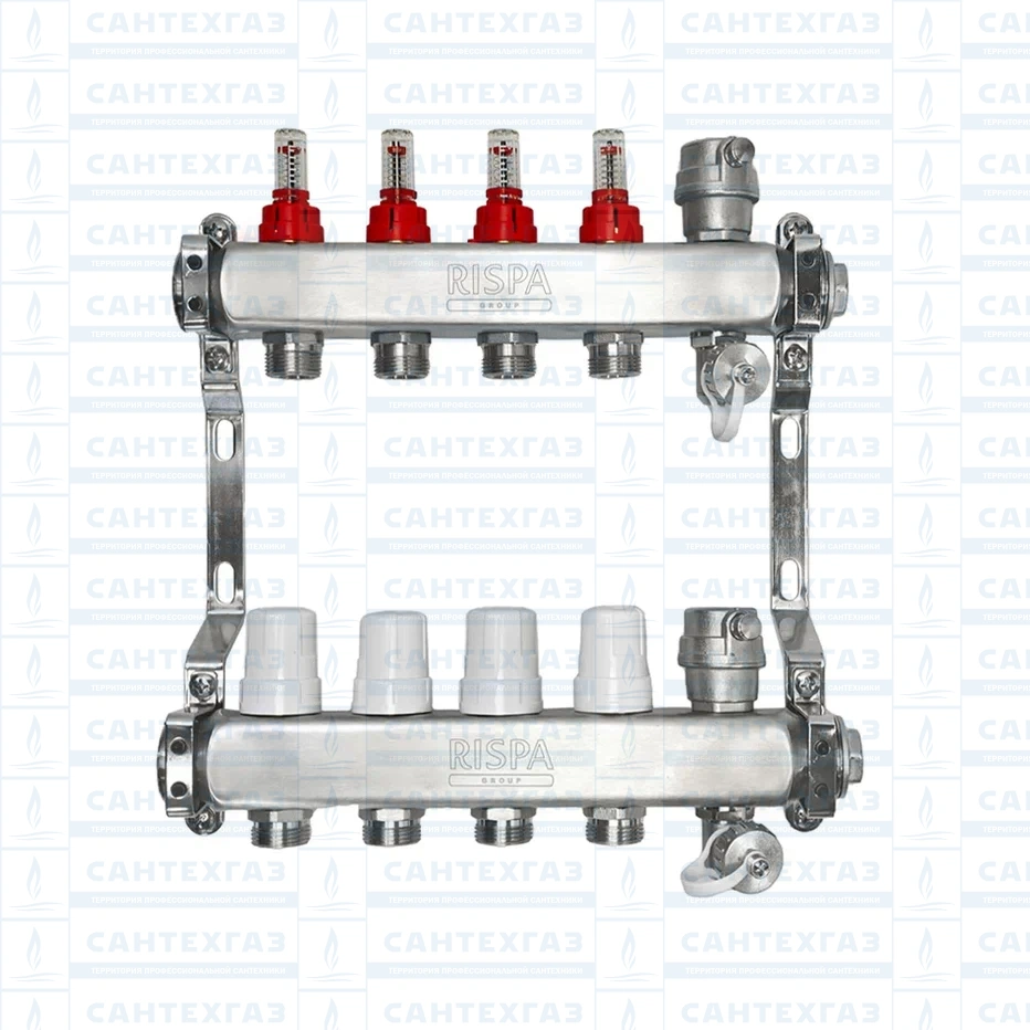 Коллект.группа 1"× 3/4" 4 вых. (нерж) (в сборе с расх.,автомат. воздухоотвод. и др.краном)RISPA к.5